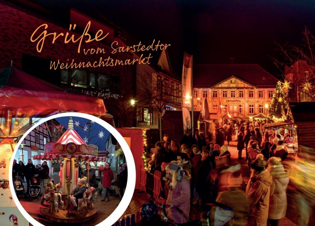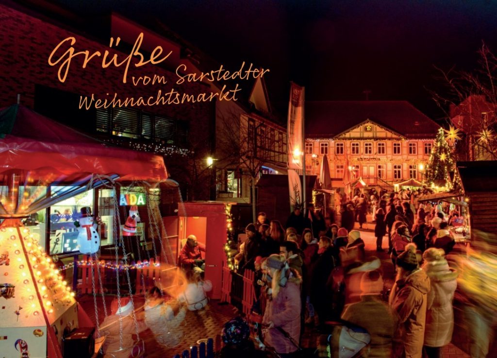 In diesem Jahr neu sind zwei weitere Postkarten als “Gruß vom Sarstedter Weihnachtsmarkt”. Die Postkarten werden über die Geschäftsleute verteilt, die beim Weihnachtsmarkt dabei sind. Diese können die Karten an ihre Kunden ausgeben.